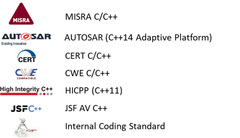 自動(dòng)執(zhí)行行業(yè)編碼規(guī)范:MISRA, AUOTSAR, CERT, CWE, HICPP 等